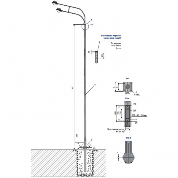 Для установки опор НФК используется железобетонный фундамент с закладным элементом.