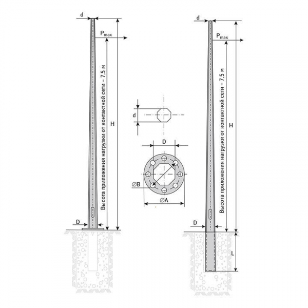 Опора ОКС монтируется в закладной фундамент. Силовая опора имеет фланцевую часть , которая крепится на закладной металлический элемент. Такая конструкция при замене изделия позволяет не демонтировать основную часть фундамента.
